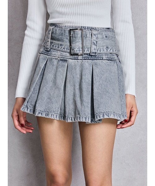 GYDA(ジェイダ)の「ハイウエストWIDE BELTプリーツデニムスカートライクショートパンツ(デニムスカート・レディース・アイスブルー/インディゴ/ミックス・S/M)」の1枚目の写真