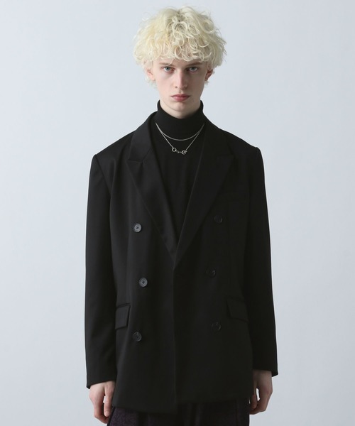 ーーーセットアップ対応上品なツヤと滑らかさを両立させた生地感が、モードな印象を引き立てるダブルジャケット。ーーーDESIGN身頃は程よくゆとりのあるボックスシルエットに設定し、クラシックなダブル仕様をモダンにアップデート。肩の構築的なラインと程よくシェイプされたウエストが、洗練された印象を与えます。襟はピークドラペルを採用し、華やかでスタイリッシュな雰囲気に。同素材のワイドパンツとセットアップとしても着用可能で、シーンを問わず洗練された印象を演出します。MATERIAL経糸に40/2双糸を使用して打ち込みをあげているため、ウールライクな膨らみと滑らかさがあります。クリアカット仕上げで、TR特有の毛羽立ちを取り除き、ツルッとした滑らかな表面感に。上品で高級感のある仕上がりになってます。ブラック09,パープル98は合わせやすい無地で、ミニマルな印象。グレー18はピンストライプを採用し、スマートでシャープな印象に。SET ITEMセットアップ対応パンツはコチラ→【633017】