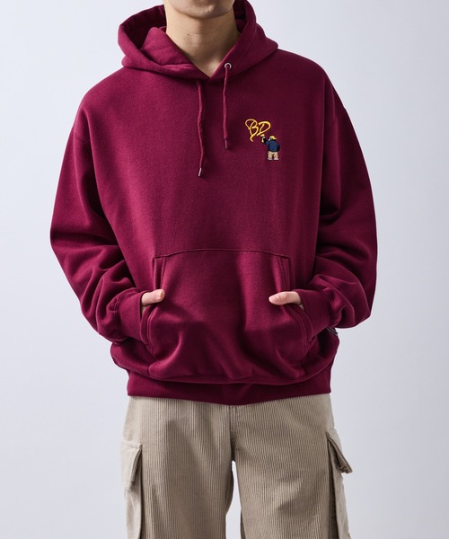 BEN DAVISのj.n.r.d別注による裏起毛パーカー【素材】しっかりとした打ち込みの裏起毛素材を使用し、厚みと保温性を両立。裏面はふんわりとした起毛で肌当たりが柔らかく、快適な着心地。【シルエット・デザイン】程よいビッグシルエットで、性別を問わず着られる万能なデザイン。左胸には“スプレーでグラフィティを描くゴリラ”のワンポイント刺繍、背面にはハートモチーフを組み合わせたタイポグラフィ刺繍をほどこした、存在感のある別注仕様。フードはしっかりと立つつくりで、被らなくても立体的なシルエットが楽しめます。[BEN DAVIS / ベンデイビス]サンフランシスコ発のアメリカン・ワークウェアブランド。デービス家は1800年代から衣類製造に携わり、1935年に「BEN DAVIS Manufacturing」を設立。ゴリラのマークで知られ、耐久性と実用性を備えたワークウェアで長年支持されています。【スタイリング】ワイドデニムやコーデュロイパンツなど、カジュアルで温かみのある素材と相性抜群。MA-1やスタジャンのように衿の低いアウターと合わせると、立体的なフードが映え、バランス良く着こなせます。シンプルながらデザイン性があり、コーディネートの主役になるアイテム。-------------------------------裏地:なし透け感:なし伸縮性:あり生地感・厚さ:普通~厚手ポケット:なしその他仕様:なし-------------------------------【モデル着用サイズ】Height:178cm Lサイズ着用profile:『j.n.r.d』【CHANGE TO NEW STANDARD】をテーマに、トレンドを取り入れた新たなスタンダードアイテムを提案。“ただシンプルで着やすいスタンダード”からの進化を目指し、常に新鮮さのあるデザインを追求するブランド。※撮影環境やモニター設定により、色味が異なって見える場合がございます。※カラーは詳細画像の色味をご参照ください。