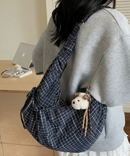 <【男女兼用】シャーリングウィンドウペンハーフムーンショルダー> ■デザイン 丸みのあるハーフムーン型に、ウィンドウペン柄を落とし込んだモダンなショルダーバッグ。 A4サイズも入るので通学通勤にも便利。 シャーリング仕様の開口部が柔らかなニュアンスを生み、ストラップにも同柄を配した統一感あるデザイン。 男女兼用で使えるサイズ感と、程よいボリュームが春のスタイルにアクセントを添えてくれます。 ■スタイリング 春のデートにはシャツ×スラックスでキレイめにまとめて、バッグで遊び心をプラス。 スウェットやニットと合わせれば、カジュアルにもストリートにも振れる万能さが魅力。 肩掛け・斜め掛け・手持ちとマルチウェイで使えるので、シーンに応じたスタイリングが自在です。 ■素材 軽量で耐久性のあるポリエステル素材を使用。 シャーリング部分は柔らかく、荷物の出し入れもスムーズ。 汚れが付きにくく、型崩れしにくい構造で、デイリー使いにも頼れる機能性を備えています。 ■着用レビュー ・スタッフA:身長175cm / 体重65kg コメント:肩掛けでも斜め掛けでもバランスが良く、春のカジュアルにもキレイめにも馴染む万能バッグ ------------------------------------------------- 透け感:なし 裏地:なし 伸縮性:なし 生地の厚さ:薄め ------------------------------------------------- ■ポイント ・春 ・韓国ファッション ・モード ・デート ・お出かけ ・ユニセックス ・男女兼用 ・カジュアル ・きれいめ ・シャーリング ・ナイロン ・ハーフムーンショルダー ・春服 ・夏服 - 推奨サイズ - サイズM : 〜174cm(レディースフリーサイズ) サイズL : 175cm~ ▼商品について▼ ※画像の商品はサンプルとなります。実際の商品と色味、仕様、加工、サイズ、素材等が若干異なる場合がございます。 ※商品の色味は、撮影場所や光のあたり具合、お使いの端末により色味が違って見える場合がございます 。予めご了承の上ご注文下さい。 ▼お取り扱いについて▼ ※着用またはお取り扱いの際は、アテンションタグや洗濯ネームを必ずご確認ください。 《 お知らせ 》 ●商品のお気に入り登録 お気に入りアイテムの値下げ・再入荷・在庫1点などの通知を受け取ることができます。 ●ブランドのお気に入り登録 新商品や再入荷、セール、クーポン配布などお得な情報を受け取ることができます。 是非、お気に入り登録してみてください