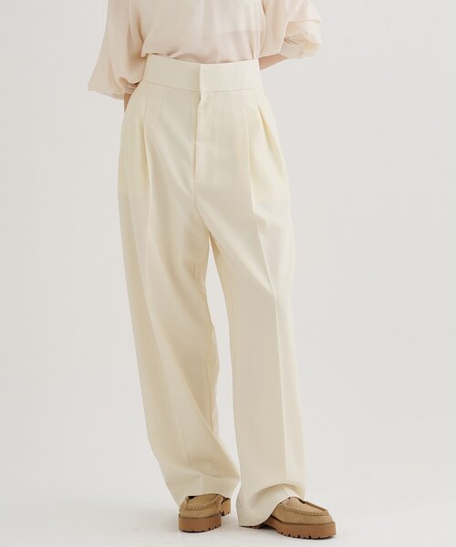 【2026SS】きちんと感とトレンド感を両立した、大人のサスぺ付きパンツ■仕立て映えする美しいシルエットが魅力のタックパンツ。■平織りながら厚みと奥行きを感じるドライタッチな生地を使用。■ハイウエスト+センタープレス加工により脚長効果も抜群。■取り外し可能なサスペンダー付きで、気分やスタイリングに合わせてアレンジ可能。■オンオフを選ばず活躍できる、きちんと感とトレンド感を両立したアイテム。■同素材のマリンテーラードジャケット(ブランド品番:WGZ1061107A0001)とのセットアップもおすすめ。【COLOR】オフホワイト:クリーンなムードを演出するオフホワイト。ネイビー:シーンレスに活躍するきれいめダークネイビー。【MATERIAL】適度なドライタッチをもち、平織りでありながらオックスのような見え方で迫力のある表情感が特徴の生地。【STAFF COMMENT】■身長153cm|普段サイズ XS~S|着用サイズ 36きちんと感とトレンド感を両立した、サスぺ付きハンサムパンツ。ハイウエストとセンタープレス入りで脚長効果も抜群!着丈は長めなので、綺麗めに穿かれるなら丈詰めがおすすめです。3cmヒールを履いて着用しています。■身長161cm|普段サイズ M~L|着用サイズ 38ドライタッチな生地感のパンツ。ハイウエストでタック入りなので、履くだけでスタイルアップが叶います。ハンサムながらもサスペンダーの紐が細めなので、女性らしい雰囲気に。サイズ感はゆったりめ。オフホワイトは裏地付きですが、少し透け感はあるのでインナーに注意です。■身長166cm|普段サイズ L~XL|着用サイズ 38ハイウエスト仕様ながら、締め付け感が少なく快適な履き心地です。サスペンダーは取り外し可能で、スタイリングやシーンに合わせてアレンジが可能。同素材のジャケットと合わせたセットアップスタイルもおすすめです。高身長の方にも安心して着用いただける着丈となっています。----------------------------------------------------洗濯方法:ドライクリーニング透け感:なし裏地:あり伸縮性:なし光沢感:なし----------------------------------------------------【注意事項】・画像の商品はサンプルです。実際の商品と仕様、加工が若干異なる場合があります。また 、パソコンやスマートフォンのモニター環境などにより、色味が違って見える場合があります。・店頭及び屋外での撮影画像は、光の当たり具合で色味が違って見える場合があります。商品の色味は、スタジオ撮影の画像をご参照ください。・入荷状況により、お届け予定が前後する場合があります。・お客様への発送が店頭販売より遅れる場合があります。・追加生産商品は、一部の店舗、通販で販売中の場合があります。予めご了承下さい。【気になるアイテムは、「お気に入り」登録を】ハートマークをクリックしておくことで、スムーズにお買い物が楽しめます。・ラスト一点のお知らせ・再入荷のお知らせ・SALEのご案内