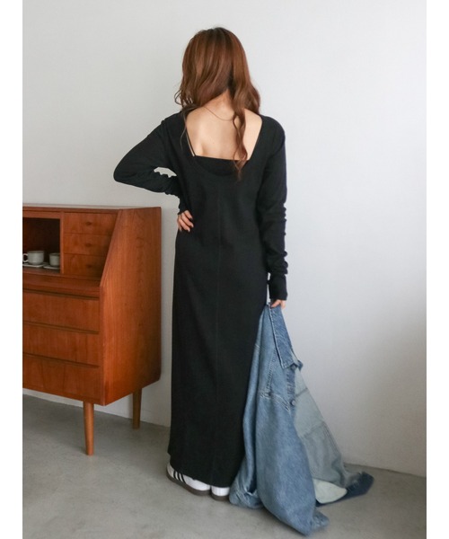 背中の開きデザインが抜け感を演出してくれるロングワンピース ■デザイン シンプルなシルエットながらも、程よく肌見せできるバックオープンデザインで大人っぽい印象に。 身体のラインを拾いすぎない厚みの生地とサイズ感で、リラックス感ときちんと感を両立しています。 無地のブラック・ライトグレーはスタイリングに馴染むベーシックカラー、 ボーダーはカジュアルな雰囲気で一枚でもサマになるアイテムです。 背中の開きがアクセントになるので、ヘルシーな肌見せコーデやインナーとのレイヤードも楽しめます。 デイリーからお出かけまで幅広く活躍する万能ワンピースです。 ■生地感 柔らかくストレッチの効いたカットソー素材で、着心地も抜群。 身体のラインを拾いすぎない程よい厚みです。 ■サイズ感 ほどよくゆとりのあるIラインシルエット。 足首が見えるくらいのロング丈で、1枚でバランスよく着こなせます。 フラットシューズにもブーツにも合わせやすい丈感です。 ■スタイリング 一枚で着るのはもちろん、シャツやブルゾンを羽織ってラフに着こなすのもおすすめ。 ・・・・・・・・・・・・・・・・・・・・・・ 透け感:なし 裏地:なし 伸縮性:なし 光沢感:なし 生地の厚さ:普通 ・・・・・・・・・・・・・・・・・・・・・・ ※商品画像はサンプルのため、色味やサイズ、素材の混率等の仕様に 変更がある場合がございます。予めご了承ください。 ※生地寄り画像を正規の商品の色味に近づけております。 ■商品のお気に入り登録 再入荷通知やラスト1点、お得なプライスダウンの情報も受け取ることができます。 ぜひご登録ください◎