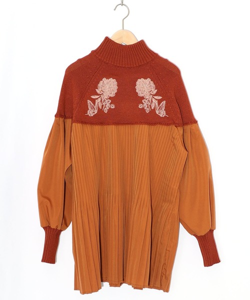 + iS ScoLar商品 +胸元に左右対称で大きなバラ刺繍が咲いた、ひと目で心を奪われる華やかさをまとった特別感あふれる切り替えニットプルオーバー。肩から裾にかけて同系色のプリーツ素材をふんわり切り替え、袖にも軽やかな布帛生地をプラス。動くたびにひらひらと揺れる繊細なプリーツがスタイリングにエレガントでロマンティックな空気をそっと纏わせてくれます。ゆったりとしたチュニック丈が、気になる部分も優しくカバーしてくれる絶妙なバランス。ひらりと揺れるスカートを合わせれば、まるでおとぎ話の主人公のように可憐に。すっきりとしたパンツと合わせればプリーツの表情がより引き立つ洗練された雰囲気の大人スタイルに仕上がります。■スタイリングitemはコチラ⇒【553270】●model:ななせ 155㎝/61inch●model着用:09(ブラック)(着用商品はサンプルの為、実際のデザインと変更がある場合がございます)ーーーーー裏地:なし透け感:やや透け感あり生地の厚さ:普通生地感:普通伸縮性:(ニット部分)あり・(布帛部分)なしポケット:なしーーーーー※ 刺繍使用取り扱いのご注意:※この製品は摩擦や水濡れにより色落ちにすることがありますのでご注意ください。※この製品は生地独特な風合いを出すために、製品加工してあります。(製品は1点、1点多少表情が違います)※この商品は糸及び編組織の性質上、引っ掛け・引っ掛かりやすい為、着脱時や取り扱いにご注意下さい。※この商品は刺繍を使用している為、糸及び編組織の性質上、引っ掛け・引っ掛かりやすい為、着脱時や取り扱いにご注意下さい。