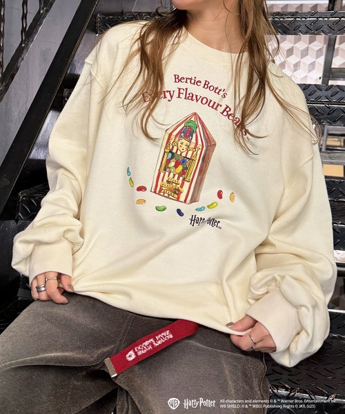 Harry Potter HONEYDUKES COLLECTION ハリー・ポッターシリーズに登場する ホグズミード村にある有名な菓子店ハニーデュークスのお菓子を デザインに落とし込んだコレクションが登場! 【Harry Potter】ハニーデュークス フロントモチーフプルオーバー 作中にも登場する蛙チョコレートとバーティー・ボッツの百味ビーンズの優しいタッチのアートを使用したプルオーバー! 大きくフロントに描かれており、ロゴ部分は刺しゅうを施しました◎ BACKにはハニーデュークスのロゴをプリント!