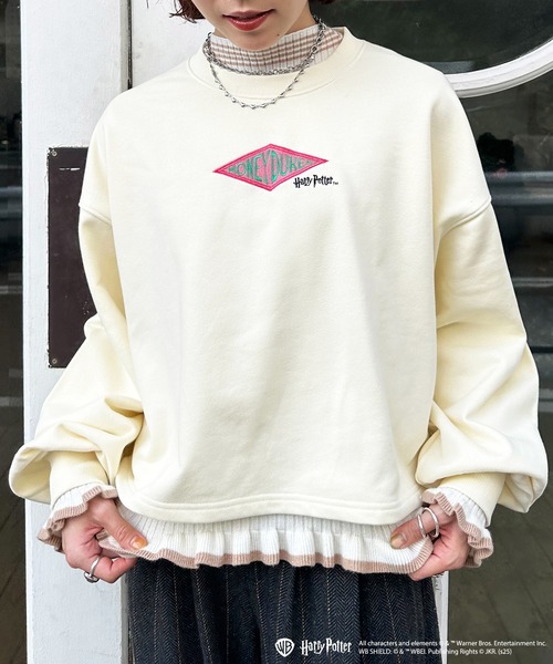 Harry Potter HONEYDUKES COLLECTION ハリー・ポッターシリーズに登場する ホグズミード村にある有名な菓子店ハニーデュークスのお菓子を デザインに落とし込んだコレクションが登場! 【Harry Potter】ハニーデュークス バックプリントプルオーバー ハニーデュークスで販売されている魔法のお菓子を並べたプルオーバー! フロントにはハニーデュークスのロゴをワンポイントで刺しゅうしました。 さりげない配色のステッチにも注目です!