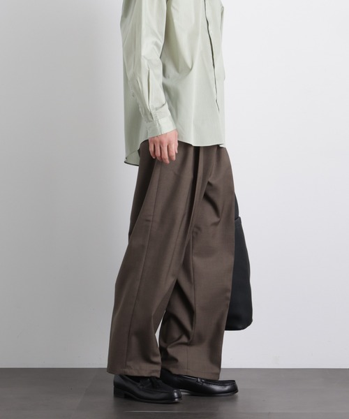 【2026 SS】 NANO universe(ナノ・ユニバース) 『大人でも着やすい人気のワイドシルエットシリーズ』 ゆったりとした穿き心地ながら、だらしなく見えない大人のワイドパンツ。24SSより好評の「大人のワイドパンツ」ハイツイストワイドスラックスをさらにアップデート。よりコーディネートしやすいよう、ベルトループやタックを入れるなど腰回りのディテールを中心に再構築した一本です。 ◆快適さと上品さを両立した大人のためのワイドパンツ◆ ■デザイン ・腰まわりにゆとりを持たせた2タックデザイン ・裾に向けてほんのりテーパードをかけた絶妙なシルエット ・ウエストはゴムとスピンドルのイージー仕様 ・見た目もスマートな前開きファスナー付き ■素材 ・ポリエステル100%のドライギャバジンを採用 ・ウール混のような上品な見え方の素材 ・洗濯機使用可 ■カラー展開 ・着回ししやすいチャコールとブラック ■コーディネート ・下記、大人のワイドシャツと合わせたコーデがおすすめ 668-6120206 「大人のワイドシャツ」レギュラーカラー 長袖 668-6120207 「大人のワイドシャツ」バンドカラー 長袖 ■シリーズ ・668-6127202 「大人のワイドパンツ」シャークスキンイージースラックス ■サイズ感 程よいリラックスフィット 【推奨サイズ】 Sサイズ: 163-170cm Mサイズ: 168-175cm Lサイズ: 173-180cm XLサイズ: 175-182cm ※標準体型を基にした目安でございます。 予めご理解、ご了承の上お買い求めください。 ※該当の無いサイズも記載しておりますので、展開サイズをご参考ください。 ■取扱方法 ネットを使用してください。あて布を使用してください。 ※サンプルにて撮影、採寸を行う為、実際にお届けする商品と仕様やサイズが異なる場合がございます。予約時は生産の都合上、お届け予定時期が前後する場合もございますので、予めご了承下さい。 ※光の当たり具合や撮影環境により色味が異なる場合がございます。正しい色味はスタジオ画像の色味をご参照ください。 ※サイズスペックは、ブランドの採寸方法で表記している場合がございます。予めご了承ください。 ▼商品のお気に入り登録 お気に入りアイテムの再入荷や残り1点の通知を受け取ることができます。 ▼ブランドのお気に入り登録 新作アイテムの入荷や人気アイテムの再入荷、タイムセールやクーポンなど、 いち早くブランドのお得な情報を受け取ることができます。