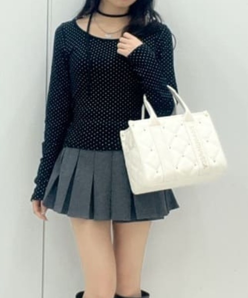 ◇SAMANTHAVEGA(サマンサベガ)のロゴテープビジューハンドバッグサマンサベガのロゴテープシリーズから新作が登場しました。トレンドのBOXフォルムに、合皮×ビジューを合わせ大人っぽい印象にアップデート。デニムやスウェットのカジュアルな日も、大人っぽいワンピースにもおすすめのバッグです。▽デザイン・BOXフォルムがトレンド感を演出。・持ち手のブランドロゴのテープがアクセントに。・ちりばめられたビジューが上品で大人っぽい印象に。▽機能性・持ち手は合皮テープの加工で持ちやすく汚れにくい。・ざっくりとしたトートで荷物が入れやすい。・2WAYの仕様で斜め掛けも◎太めのベルトなので長時間使用も肩への負担を軽減。・軽量でデイリー使いしやすいおすすめバッグ。【対応しているもの】・長財布・ペットボトル縦/横向き(500ml) FREE:幅26cm/高さ19cm/マチ11cm/持ち手上がり10cm/ショルダー最長134cm/ショルダー最短79cm/重さ550g/