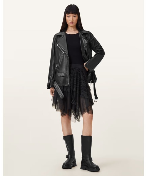 Jayde スカートは、遊び心のあるドラマチックなシルエットが魅力。存在感のあるボリュームとフリルが旬なムードに。▼特徴、ポイントプルオンタイプミニ丈ロゴ入りウエストゴムフリルデザインアシンメトリーヘムハイライズ裏地付きライトウェイトサイズ:41cm(背中心から裾)モデル身長: 173cm 着用サイズ: UK 8バスト: 78cm, ウエスト: 63cm, ヒップ: 88cmレギュラー フィット洗濯表示:裏返し洗いALLSAINTS(オールセインツ)について1994年創業の英国発プレミアムコンテンポラリーブランド。イーストロンドンに本社を構え、メンズ・ウィメンズウェアをはじめとする商品のデザインからストアデザインまで、すべてを自社でコントロールしています。アイコンのバイカージャケットを筆頭に、バッグやシューズなどのレザーグッズ、独特なシルエットのドレス、素材にこだわったニットやシャツ、デニムなどの豊富なアイテムが揃います。現在、世界26か国に250店舗以上を展開中。
