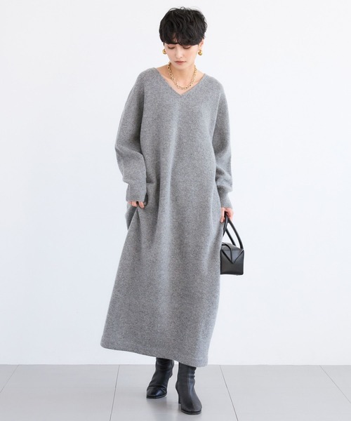 リラクシーに着られて女性らしさを演出する、ロング丈ニットワンピース・コクーンシルエットのVネックニットワンピース・顔周りをすっきりとシャープに見せてくれるVネックデザイン・肩幅や身幅にはたっぷりとゆとりを持たせリラックス感のある着心地・体のラインを拾いにくいゆったりとしたサイジングが魅力・シルエットは、裾に向かってやや緩やかに狭まるテーパードライン・全体に丸みのある柔らかなフォルム(コクーンシルエット)を生み出し、女性らしい優しげな雰囲気を演出【スタイリング】キレイめに着こなしたいときはヒールブーツ合わせ、カジュアルに決めたいときはスニーカー合わせなど、足元でスタイリングの印象の変化を楽しんでください。【素材】お手入れ方法:クリーニング厳選されたオーストラリア産ウールを100%使用した紡毛糸です。【原産国】日本お買い物をお得にもっと楽しく!上手な活用方法>>>▼商品のお気に入り登録▼完売カラーの再入荷通知や、ラスト1点の通知、プライスダウンしたセール通知も受け取ることができます。▼ブランドのお気に入り登録▼新作や再入荷等、いち早くブランドのお得な情報を受け取ることができます。【ご注意】※こちらのワンピースはソフトな肌触りが特徴で、その素材の特性があるが故、着丈の差が発生しやすい商品です。一番短いもので最大4cm差が出る場合があります。※屋外の光や照明の当たり具合で、実際の商品の色味とカラー別画像の色味に若干の違いが発生する場合がございます。 詳細画像と併せてご確認の上、ご注文いただきますようお願い致します。