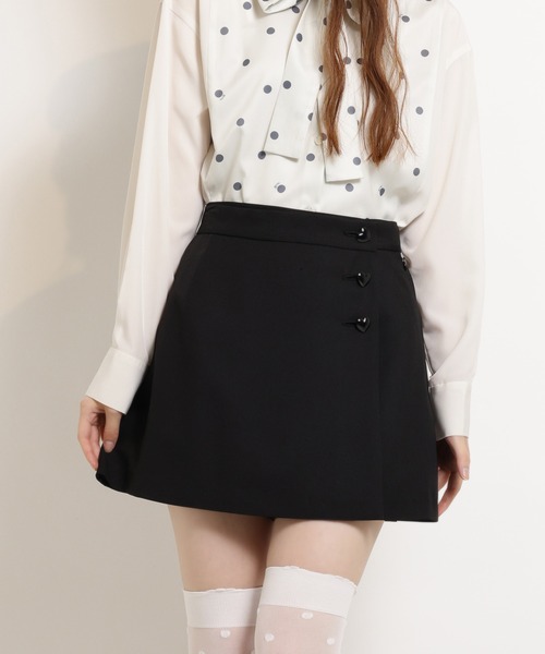 MILK 2025 Winter◾︎フロントをラップスカート風に仕上げた、遊び心のあるキュロット◾︎ハートボタンをあしらい、シンプルなデザインに可愛らしさをプラス◎◾︎スカート見えしながらも、インナーはキュロット仕様で動きやすさも抜群。アクティブなお出かけにも最適です♪◾︎同シリーズの「ハートButton ジャケット(商品コード:)」とセットアップで着用すれば、統一感のあるクラシカルなスタイルに!♡ Colors ♡A,レッド / B,ブラック♡ Size ♡ウエスト 66~72㎝ / ベルト下丈 36㎝♡ おすすめのスタイリング ♡▪milk ドットシャツ (code : 98714659)▪ハート Button ジャケット (code : 98714661)▪Cross トップス (code : 98714675)▪ロゴ ベレー (code : 98714694)