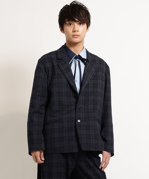 MILKBOY 2025 WINTER▪取り外し可能なヒップフラップがセットになっており、ジャケットの裾やパンツに付け替えることで、コーデの幅が広がる1着▪裏地には鮮やかなカラーを配し、見えない部分にもこだわることで、ボタンを開けて着るとアクセントになります◎▪「PIN TUCKED パンツ(商品コード:98714753)」とのセットアップ着用でスタイリッシュな着こなしがおすすめ!~ Colors ~A,グリーン×ブラックチェックB,ブラック~ Size ~身幅 58㎝ / 着丈 68㎝~ Recommended styling ~▪DOUBLE COLLAR シャツ (code : 98714742)▪PIN TUCKED パンツ (code : 98714753)▪LOGO ベレー (code : 98714783)model:西村悠里(STARDUST PROMOTION inc.)身長:174㎝着用:A,グリーン×ブラックチェック