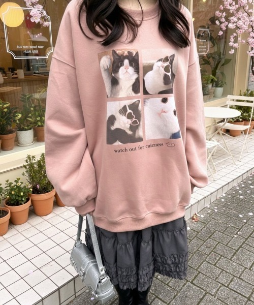 -おすすめポイント♪-思わず視線を集めるキャットプリントが主役のスウェットプルオーバープリントは 選べる2種類♡オートミール・グレー・ネイビー:5匹の猫×存在感のあるピンクロゴで、ガーリーに仕上がるデザイングレー系その他・ピンク・その他:プロマイド風の猫写真がプリントされた、キャッチーで写真映えするデザインシルエットはゆったり着られるオーバーサイズで、抜け感のある旬なバランスに◎1枚でコーデが完成する、着映えトップスです!表地は綿で肌ざわりの良いスウェット素材。裏地はポリエステルで、快適な着用感とロングシーズン使いやすさを両立しています♪プリーツスカートやミニスカートと合わせれば、ガーリーで韓国っぽいスタイルにデニムやカーゴパンツと合わせて、ゆるストリートに寄せるのも◎シャツやロンTをレイヤードすれば、着こなしの幅もぐっと広がります-お買い物をお楽しみいただくために-◆Instagram◆lacvert_official新作情報やルックを配信中◆この商品が気になったらお気に入り登録完売カラーの再入荷通知やセール情報、ラス1情報などの通知を受け取ることができます♪◆LAC VERTをお気に入りブランドに登録新商品や入荷情報を受け取ることができるので、いち早く新作をチェックできます!是非ご登録してくださいね♪※撮影時のライティング、ご覧になっているモニター・PC環境により、実際の商品と色味が異なって見える場合がございます。予めご了承をお願い致します。韓国 韓国ファッション 韓国風 韓国アクセサリー シンプル 大人 韓国通販 かわいい 可愛い おしゃれ オシャレ プチプラ トレンド ストリート 量産型 通勤 通学 ペアルック プチプラ 大人かわいい 冬服 防寒 スウェット プルオーバー 猫 キャット ゆるキャラ 動物 秋 秋服 冬