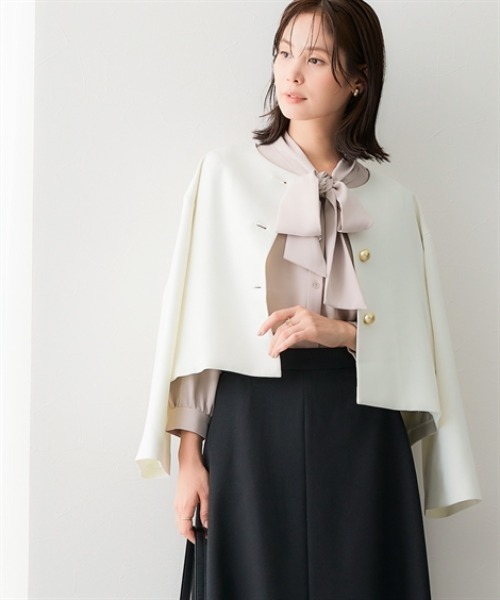 【レディーススーツ】<OTOさんコラボ>ボトムが選べるセットアップスーツ(ノーカラージャケット+ワイドパンツまたはロング丈フレアスカート)(ストレッチウール調シリーズ)<大きいサイズ有>