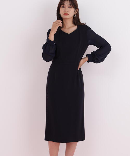 異素材の組み合わせが上品な印象を与えるエレガントワンピース 身頃には上質なバックサテンジョーゼットを使用し、程よい光沢としなやかな落ち感で大人の女性らしさを演出します。 袖は軽やかなシフォン素材で仕立て、透け感がありながらも品よく華やか。 袖口のギャザーが柔らかなボリュームを生み、フェミニンな印象をプラスします。 ウエストマークされたシルエットがスタイルアップを叶え、フォーマルにもデイリーにも活躍する一枚です。 【素材説明】 身頃・アセテートとポリエステルをミックスしたバックサテンです。 肌に触れる裏面を組織で滑りを良くし、さらにナチュラルストレッチと反発感のある風合いが着心地の良さをサポートします。 袖・100dの糸を使用した程良い透け感とふんわりとした軽さを持つシフォンジョーゼットです。 【商品特性】 ストレッチなし/身頃裏付き/後ファスナー/後ろベンツあり/ひざがすっぽり隠れる丈 ◆お買い物をよりお楽しみいただくために◆ ・「商品のお気に入り登録」で完売カラーの再入荷やラスト1点、セール通知を受け取ことができます。 ・「ブランドのお気に入り登録」で新商品の入荷情報など、いち早く受け取ることができます。