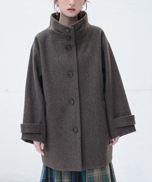 \冬の重ね着も快適に♪/『広めのアームホールでインナーを選ばず、ストレスフリーな着心地。』大人デザインスタンドカラーコクーンコート襟元のタックとボタンデザインがアクセントになる、スタンドカラーのメルトンコート。裾に向かってすっきりとしたコクーンシルエットが特徴です。袖口のタブデザインもポイントになり、 上品な着こなしを演出します。シーズンムードたっぷりの柔らかいメルトン生地を使用。程よい厚みと温もりがあり、寒い季節にぴったりの素材感です。滑りの良いポリエステル素材の裏地付きで、 着やすく安心感があります。ボタンを閉めて着用した際、顔周りに当たらない襟の高さや襟ぐりのラインにこだわりました。広めのアームホールで、ドルマンスリーブやドロップショルダーのインナーの上からでも着やすいです。便利な両サイドポケット付き。♦POINT♦ボタンを全て開け、襟を寝かせてショールカラーのように着るのもおすすめです。大きく開いた襟が小顔効果をもたらします。【size】着丈:80cm肩幅:55cmアームホール:54cm袖丈:52cm袖口周り:37cmバスト:133cm裾周り:132cm※ZOZO独自のサイズ表記とは、計測位置が異なる場合がございます。あらかじめご了承ください。.........................................n'OrLABELほかにない、私のデイリーウェア毎日の生活を心地よく自分らしく過ごすための服。遊び心を取り入れた、大人のカジュアルスタイル。.........................................