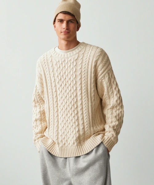 柔らかく肌触りの良いウール混のざっくり編みケーブルニットセーター、リラックスフィット クルーネック 長袖、ドロップショルダー 袖口リブ、裾リブ フィット: オーバーサイズ、ゆったりめの袖、ストレートシルエット タイト過ぎずルーズ過ぎず、クラシックなフィット感がお好みの方にはワンサイズダウンをおすすめします。 腰にかかるくらいのスタンダード丈 *商品タグに記載の価格とサイト上の販売価格が異なる事があります。 【Gap ギャップ】1969年にアメリカ・サンフランシスコで創業以来、世界的なカジュアルファッションブランドとして、常にモダンなアメリカンカジュアルを提案し続けています。 ※商品画像は、光の当たり具合やパソコンなどの閲覧環境により、実際の色味と異なって見える場合がございます。予めご了承ください。