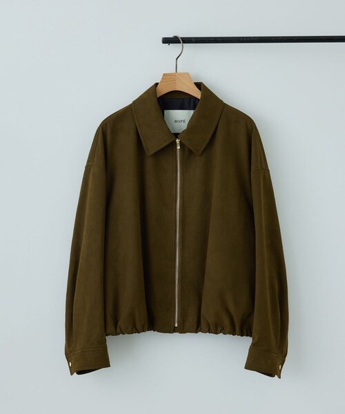 【デザイン・シルエット】 ゆったりとしたサイズ感に、すっきりとしたショートレングスに仕上げています。 裾にギャザーを寄せることで、女性らしい柔らかな印象で着用できる人工皮革のブルゾンです。裾の分量は脇のドローストリングで調整可能です。素材を活かしたミニマルな佇まいは、パンツにもスカートにも合わせやすいバランスです。 【おすすめのスタイリング】 ニットトップスにリンクルサテンスカートを合わせた女性らしいスタイリングや、ベルト付きウールパンツと合わせたマニッシュなスタイリングがおすすめです。 【素材】 超極細繊維を使用した高級人工皮革。特殊な技術によりタッチは柔らかく肌触りも滑らか、軽さも特徴です。 ---------------------------- 透け感:なし 裏地:あり 伸縮性:なし 光沢感:なし 生地の厚さ:中間 ポケット:あり 開き方:ファスナー ---------------------------- 【モデル情報】 モデル身長:175cm 着用サイズ:F ※画像の商品はサンプルです。実際の商品と仕様、加工、サイズが異なる場合がございます。 ※撮影場所やライティング、お使いのモニター環境によって色の見え方が異なる場合がございます。 ※商品のカラーは画像の色味をご参照ください。動画は仕様説明のため、色味が実物と異なる場合がございます。