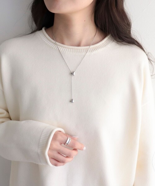 ◇fredy emue◇ミニハートが大人可愛いY字ネックレス●point・メタルが醸し出す大人な雰囲気と小ぶりなハートモチーフの可愛らしさのコンビネーション・こなれ感のあるY字シルエットは、身に着けるだけで洗練されたスタイルに・スライドビーズを動かすことで長さを調節できるので、その日の気分やコーディネートによって雰囲気を変えられるのもポイント・メタル素材でどんなファッションにも合わせやすく、またオールシーズン使えるのも嬉しいポイントです◇商品のお気に入り登録◇【お気に入りに登録】を是非ご活用ください。再入荷の通知がいち早く届きます。●お取扱い上のご注意●*アテンションタグを必ずご確認の上、着用又はお取り扱い下さい。*店頭及び屋外での撮影画像は、光の当たり具合で色味が違って見える場合があります。商品の色味は、スタジオ撮影の画像をご参照下さい。*商品画像に関しては出来る限り忠実に表示出来るよう努めておりますが、お客様がご利用のモニターの設定及び特性により、実際の商品と比較し色味に若干の誤差が生じる場合があります。※サンプルでの採寸のため、サイズ表はあくまで目安となります。予めご了承ください。
