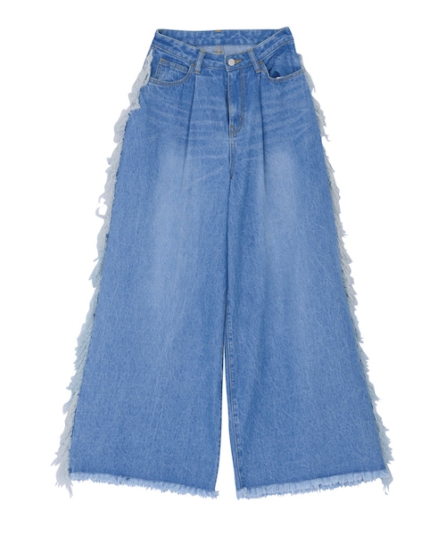 【jouetie】 PREORDER同時購入対象※こちらの商品は【jouetie】 PREORDER同時購入対象の記載がある商品との同時購入が可能になります。※発送時期が異なる予約商品同士の同時購入は対象外となります。【予約販売商品】発送予定時期:09月中旬発送予定※予約商品は、商品入荷次第の発送となっております。発送予定時期は、商品の入荷状況により前後する場合がございます。入荷次第ご注文順のお届けとなりますので、予めご了承お願い致します。※こちらの商品は、通常商品・発送時期が異なる予約商品と同時に購入することができません。※商品画像は、サンプルでの撮影のため、色味や仕様の変更がある場合がございます。※予約商品の場合、サイズ・混率の表記がない場合がございます。また、サイズ・混率については変更になることがございますので、 予めご了承をお願い致します。女優 仲里依紗さんとのスペシャルコラボレーショントレンドの70年代ファッションの要素と遊び心を注入したスーパーワイドシルエットのデニムワイドパンツ。デニム地のフリンジがグランジ感を演出します。オリジナルのパッチはあえての紙パッチでヴィンテージライクに仕上げています。仲里依紗さんコラボ限定のパッチデザインでレアな一本です。