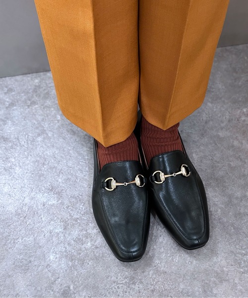足を包み込む、しなやかフィットのビットローファー しなやかな足あたりと洗練された佇まいを兼ね備えた、上質素材のサケット製法ビットローファー。 ブラック・ブラウンには丈夫で上品な光沢を持つ山羊革を、グレージュには柔らかな質感が魅力の羊革スエードを採用。 素材ごとに異なる表情が、足元のスタイリングをさりげなく格上げします。 内部には、足をやさしく包み込むような履き心地を生むサケット製法を採用。 縫い目を極力減らした袋状の構造が、足の動きにしなやかに寄り添い、長時間歩いてもストレスを感じにくい快適さを実現します。 また、屈曲性に優れたソールと柔らかなアッパーにより、初めて履いた日から足に馴染む軽さと柔らかさを体感できます。 アッパーにはクラシックなビット金具を配し、オンにもオフにも合わせやすい上品で大人な印象に。 通勤から休日のお出かけまで、幅広いシーンで活躍する一足です。 上質素材 × 快適構造で、毎日の足元をエレガントに。 長く愛用できるローファーをお探しの方におすすめです。 【サケット製法とは】 サケット製法とは、アッパー(表側の革)とライニング(内側の裏材)を袋状に縫い合わせ、 中底を使わずに仕上げるイタリア発祥の伝統的な製法です。 中底を入れない構造により、足を入れた瞬間に生まれる“包み込まれるようなフィット感” が最大の特徴。 靴全体がしなやかに曲がるため、長時間歩いても疲れにくい履き心地を叶えます。 さらに、アッパーを直接アウトソールに接着・縫合することで、軽さと柔らかな返りの良さを両立し、贅沢で快適な履き心地を実感できる仕上がりになっています。 ※画像の商品はサンプルです。 お届けする商品に仕様・サイズ等の変更が生じる場合がございます。 予めご了承ください。 ※本革(天然皮革)の商品について 素材の特性上、多少のキズやシワ、色ムラや擦れが見られる場合がございます。 汗や雨などで濡れた場合、色移りする場合がございます。 革の品質保持のため、できるだけ濡らさないようご注意下さい。