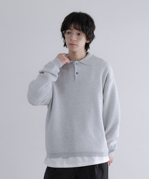 ■素材 綿とポリエステルを編み込む事で、綿の柔らかさとポリエステルの軽さを表現したニットとなっています。 また、ダブルジャガードという編み方なので、膨らみを持たせてスウェットのような見え方を表現しています。 ■デザイン カジュアルなアイテムながらも、クラシカルなポロ襟はきちんと感があり、 程よくルーズなシルエットがこなれた印象をプラスします。 スウェットのように気軽に着られ、ニットなので上品な印象も併せ持つアイテムです。