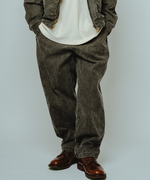 26春夏新作セットアップアイテムが登場古着市場でも品薄状態のBIG MIKEの復刻企画となるアイテムです。 見た目は「ガチなワークパンツ」。 履き心地は「スウェット」。 BIG MIKE流、反則級のダックパンツ。 「ダックパンツは硬くて、ベルトが苦しい」 そんな常識を覆す、リラックス仕様のワークパンツが登場。 生地は本格的なヘビーオンスのダック生地ですが、ウエストは「ゴム&ドローコード」のイージー仕様。 ベルトレスでサッと履けるため、長時間のドライブやデスクワーク、お腹いっぱい食べた後の苦しさとも無縁です。 【なぜ、このパンツが選ばれるのか?】 ■ 楽なのに「手抜きに見えない」 ゴムウエストのパンツは便利ですが、生地が薄いと部屋着に見えがち。 しかし、これはハリとコシのあるダック生地なので、シルエットが崩れず、しっかりとした「一張羅」として成立します。 ■ 育てる「経年変化(エイジング)」 最初はハリがありますが、履き込むほどに柔らかく変化。 膝裏のシワやポケット周りの擦れなど、ジーンズのような色落ちが楽しめます。 「汚れてもカッコいい」数少ないパンツです。 ■ 絶妙な「テーパードライン」 ワークパンツ特有のズドンとした太さではなく、裾に向かって緩やかに細くなるテーパードシルエット。 スニーカーはもちろん、ブーツとの相性も抜群。 ロールアップして、靴下を見せるスタイルも決まります。 【セットアップ対応】 同素材の「ダック トラッカージャケット」とのセットアップ着用がおすすめ。 インナーにパーカーを合わせるだけで、大人の休日ワークスタイルの完成です。 セットアップ対応商品 ダック トラッカージャケット 襟コーデュロイ 検索コード 101760604 ダック イージーパンツ 検索コード 101760605 タフなダック⽣地を使⽤したイージーパンツ。 ウエストはゴム+ドローコード仕様で快適な履き⼼地を実現。 洗いをかけることでナチュラルな⾵合いを引き出し、履き込むほどに増す味わいも魅⼒です。 同素材のジャケットとセットアップでの着⽤が可能。 ギフトにも喜んでもらえるアイテムではないでしょうか? 自分へのプレゼントにも。。 キャンプやアウトドアのシーンでも活躍してくれそうなアイテムです。 GO OUT 11月号 掲載ブランド BIGMIKE ビッグマイク 1980年にアメリカ、イリノイ州で創業したと言われるアメリカンワークブランドBIGMIKE。 日本企画にて現代のトレンドにフィットした、古き良きアメリカンワークウェア。 創業当初よりワークウエアの製造を中心に行い、開発能力も評価されミルスペックの生産も携わっていたと言われている。 1940年代頃からアメリカの多種多様なメーカーが揃いフランネル素材のワークシャツの製造を開始した際、優れた開発能力を有していたBIGMIKEは、耐久性と風合いの良いフランネルシャツを開発。 BIGMIKEのネルシャツは農業や林業のイメージを覆し、建築関係やメカニックまで多種多様なワーカー達に愛用されたブランドと言われている。 1950年代頃には、ワークウエア業界でBIGYANK、BIGMIC、BIGMIKEとで3BIGと言われるまでに成長を遂げたが、1980年代初頭、アメリカ経済の長引く低迷によりBIGMIKEはその生涯に幕を閉じた。 以前は古着で出回っていたが、現在はほとんど姿を消してしまいヴィンテージ市場でも非常に入手困難になっている。 日本企画では、古き良きアメリカンワークウエアのDNAを継承しながらトレンドにフィットする提案をし、別注やコラボレーション企画にも柔軟に対応できる体制を整えている。 昨今ではヴィンテージ市場でも、なかなかお目にかかれない状況の中から、古き良きアメリカンワークウェアのDNAを継承しつつ、現代のトレンドにフィットする商品を日本企画にて復活させる。 古着っぽいブランドでもあり、ミックスコーディネイトにも使いやすいのも特徴。