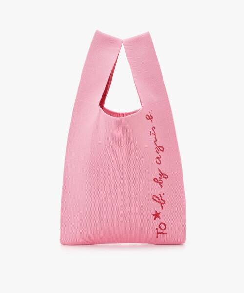 シンプルなロゴ入りのニットバッグ。 小さいですがニットなのでポーチやペットボトルなども入って便利です。 ※商品にアテンションカードや品質表示タグが付属している場合、必ずご確認の上、お取り扱いください。 原産国:日本 組成:ポリエステル100% 実寸情報 Free 縦:25.5cm/横:22cm/持ち手:25cm