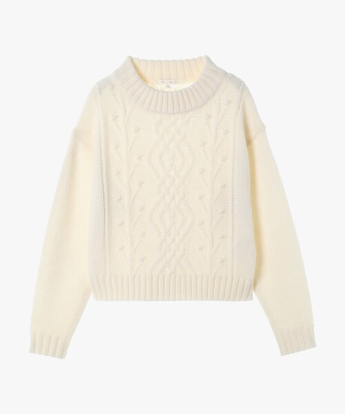 前後見頃に編み柄の入ったケーブルニット。 丸みのあるシルエットで、後ろ見頃が少し長くなっています。 太めの膨らみ感のある糸を使用しているのでぷっくりとした立体的な柄が可愛く温かみのあるニットです。 ※商品にアテンションカードや品質表示タグが付属している場合、必ずご確認の上、お取り扱いください。 実寸情報 Free 肩幅:50cm/バスト:112cm/袖丈:54cm/身丈:57cm モデル 身長/170cm、着用サイズ/UNI