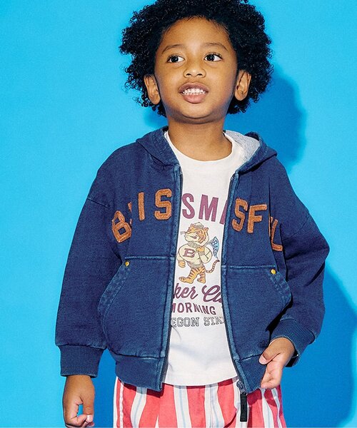 アメリカンカジュアルをベースに、ユーズド感を加えたこなれた風合いが、こ生意気なキッズを演出するデイリーカジュアルブランドです。 総ゴムウエストのボトムなど、ファッション性と機能性を兼ね備え、安心して“毎日のおしゃれを楽しめる” ウェア作りを目指しています。帽子・鞄などのデザイン性の高い小物雑貨の充実を図り、キッズのトータルコーディネートを提案。