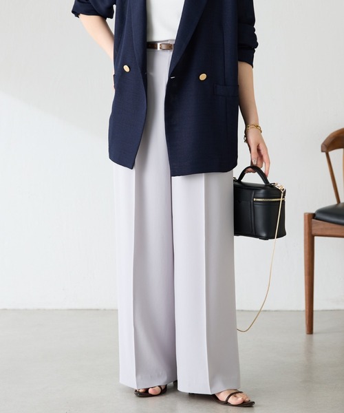 \低身長~高身長サイズ展開中!マイナス3kg見え叶う美脚パンツ/ 毎年人気のシリーズがアップデートして登場! ※前年よりウエストのみ変更しております 接触冷感/吸水速乾/UVカット(遮蔽率ホワイトで94%)を兼ね備えました!! ※カラーによってサイズ展開が異なります。 《EC限定》 ・ベージュ、ブラック:PS、TM、2サイズ ・ネイビー:全サイズ 【POINT】 ・落ち感のある生地なので、ワイドパンツでもすっきりとした印象で履いていただけます。 ・人気のワイドシルエットはそのままに、今年は新たにベルトループを取り付けました。 ・ベーシックなデザインでどんなコーディネートにも馴染みやすく、オンオフ問わず活躍します。 ・ウエスト後ろはゴムデザインになっており、きちんと見えしながらも楽な履き心地を叶えます。 ・プレスは繰り返し洗っても落ちない加工が施されています。 ・ジャージシリーズは同色同素材で揃えると“カセット服”として、オンオフ悩まずコーデが組みやすいです。 《実際に購入された方のレビュー》 ■154cm(PSサイズ) スニーカーやローヒールでも裾が地面につかずジャストサイズで履けます! ■153cm(0サイズ) 低身長、下半身太めですが、丈も丁度良くスッキリ見えて我ながらびっくりです。 ■157cm(0サイズ) ローヒールでも裾が地面につかず履けます◎腰回りが張ってるのが悩みですが、綺麗にカバーしてくれます。 ■159cm(1サイズ) 踵が隠れるぐらいの丈感です。下半身太めですが、綺麗に履けました◎ ■165cm(TMサイズ) ハイテクスニーカーと合わせると、スニーカーの上にたまる感じでおしゃれに履けます◎ ■161cm(2サイズ) 1サイズでも履けるけど、お腹周りやヒップラインが気になるし、、もう少しゆるっと履きたい願いが2サイズだと叶いました◎ 【PSサイズ】 0サイズと股下以外同じです。小柄な方や、低身長の方におすすめです。 【TMサイズ】 1サイズと股下以外同じです。長めに履きたい方や高身長の方におすすめです。 【おすすめコーディネート】 同シリーズのジャケットやブラウスと合わせればセレモニーでも活躍します。 ストンとした落ち感がハンサムで厚底スニーカーやスウェットなどスポーティなアイテムとも相性が良いです。 【素材】 ポリエステル100% 透け感:ホワイトのみややあり 裏地:ホワイトのみ膝下あたりまであり ※ホワイトの裏地(股下)0サイズ::38.5㎝, 1サイズ:40㎝ 伸縮性:あり 光沢感:なし おすすめ着用時期:春、夏、秋 洗濯:手洗い可 ≪返品・交換・修理について≫ ・着用後、洗濯後の返品・交換は致しかねます。 ・商品到着後、着用前に商品状態のご確認をお願い致します。 ・ECサイトでご購入いただいた商品は、お修理を承っておりません。 【気になる商品は「お気に入り」登録を】 ハートマークをクリックし、お好きなカラーを選んでお気に入りに登録すると 入荷情報や残り1点の通知、完売カラーの再入荷、セール情報などを受け取ることができます。 ※撮影場所やお使いのモニター環境により若干お色味が異なる場合がございます。 特にロケの撮影では明るく見える傾向にございます。詳細撮影画像で色味をお確かめくださいます様お願いいたします。 ※サンプルで撮影をしております。若干の仕様が変更になる場合がございますので予めご了承の上ご注文くださいますようお願いいたします。 ※サンプルでの採寸のためあくまで目安となります。予めご了承ください。