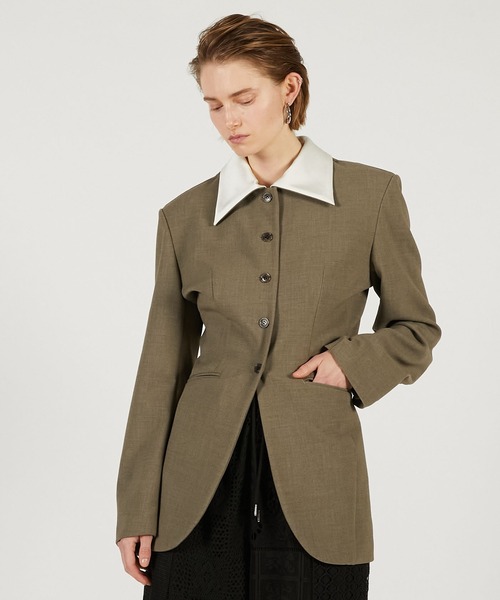 ー Style ーステンカラーが新鮮なジャケット。バストはゆとりがありつつウエストをぎゅっと絞ったユニークなスリムシルエット。衿は取り外し可能でノーカラーにもなり、裏返すとジャケットと同色の衿に様変わりする。コンパクトなシルエットで、ボトムスのウエストにインした着こなしもこなれた印象でおすすめ。ワイドパンツやマーメイドシルエットスカートなどを合わせたモードやクラシカルな雰囲気も叶うアイテム。ラフにデニムと合わせても抜け感のあるスタイリングに。ー Fabric ーストレッチの効いたダブルクロスを使用し、細身のシルエットでもストレスフリーに着れる。もっちりとした肌触りとふくらみがあり仕立て映えもする。衿はアセテートサテンでコントラストを付けている。【PRANK PROJECT/プランクプロジェクト】常識に縛られない洗練された大人の女性に向けて”意外性” と ”品の良さ” をMIXさせた上質なNEW MODE BRAND・商品のお気に入り登録再入荷、残り1点などの通知を受け取ることが出来ます。・ブランドのお気に入り登録新商品や再入荷、ショップのおすすめトピックスなど、いち早くブランドのお得な情報を受け取ることができます。