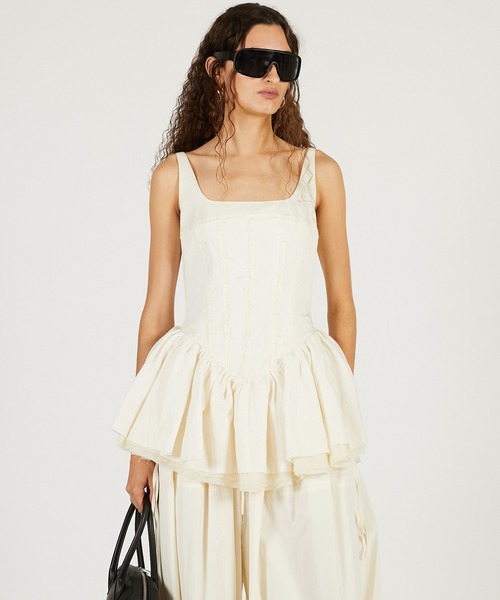 ー Style ー裾にかけて広がるボリューミーなシルエットが女性らしさをひき立てつつ、素材のドライな風合いで甘さを抑え、メリハリを効かせたペプラムトップ。切りっぱなしのシームデザインで程よい抜け感を演出。メンズライクなルーズデニムやカプリパンツなどと相性が良く、カジュアルにもモードにも幅広く活躍するアイテム。ー Fabric ー粗野感のあるナチュラルな生地を使用。しなやかさと程よいハリ感が特徴。裾はバイカラーのシアー生地を使用し、さりげなくも全体を引き締めるポイント。【PRANK PROJECT/プランクプロジェクト】常識に縛られない洗練された大人の女性に向けて”意外性” と ”品の良さ” をMIXさせた上質なNEW MODE BRAND・商品のお気に入り登録再入荷、残り1点などの通知を受け取ることが出来ます。・ブランドのお気に入り登録新商品や再入荷、ショップのおすすめトピックスなど、いち早くブランドのお得な情報を受け取ることができます。