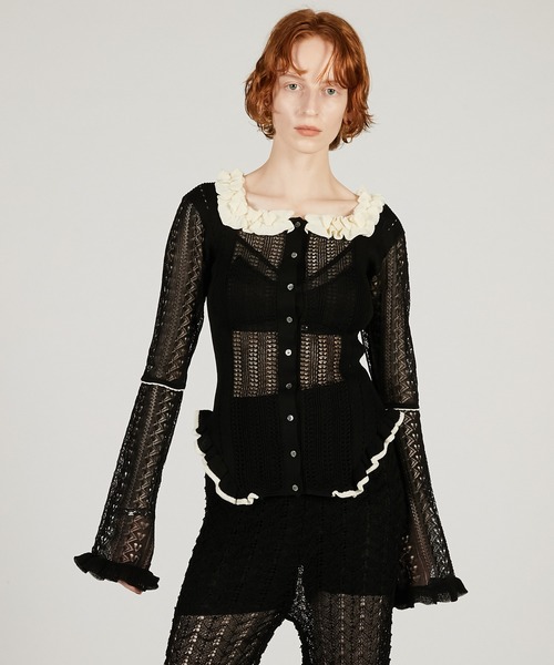 ー Style ーレースのような繊細な編み柄を組み合わせたセンシュアルなニットトップ。デコルテが綺麗に見えるスクエアーネックとフリルデザインで華やかさをプラス。軽やかな透け感でシーズンムードを高めつつ前後2wayで着用でき、汎用性の高さも魅力。ブラックとベージュはメリハリのあるバイカラーデザイン。カラーリングによって異なる表情も魅力。ー Fabric ー繊細なハイゲージで編み立てられたすかし編みニット。サラリとした清涼感のある手触りが特徴。【PRANK PROJECT/プランクプロジェクト】常識に縛られない洗練された大人の女性に向けて”意外性” と ”品の良さ” をMIXさせた上質なNEW MODE BRAND・商品のお気に入り登録再入荷、残り1点などの通知を受け取ることが出来ます。・ブランドのお気に入り登録新商品や再入荷、ショップのおすすめトピックスなど、いち早くブランドのお得な情報を受け取ることができます。