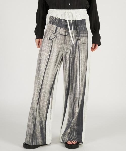 ー Style ー スラックスのフォルムをそのままプリントで落とし込んだ、遊び心あるデザインパンツ。 見た目はトラウザー、着心地はスウェットという、“きちんと感と抜け感”を両立するハイブリッドアイテム。 立体的な陰影プリントがシルエットに奥行きを与え、スタイリングの主役として存在感を放つ。 オーバーサイズのシャツやジャケットと合わせて、洗練された抜け感のあるスタイルがおすすめ。 ー Fabric ー 綿100%の裏毛を使用。 ふくらみのある糸を少し甘めに編んでいるので、ふわっとした心地よい肌ざわりが特徴。 【PRANK PROJECT/プランクプロジェクト】 常識に縛られない洗練された大人の女性に向けて ”意外性” と ”品の良さ” をMIXさせた 上質なNEW MODE BRAND ・商品のお気に入り登録再入荷、残り1点などの通知を受け取ることが出来ます。 ・ブランドのお気に入り登録新商品や再入荷、ショップのおすすめトピックスなど、いち早くブランドのお得な情報を受け取ることができます。