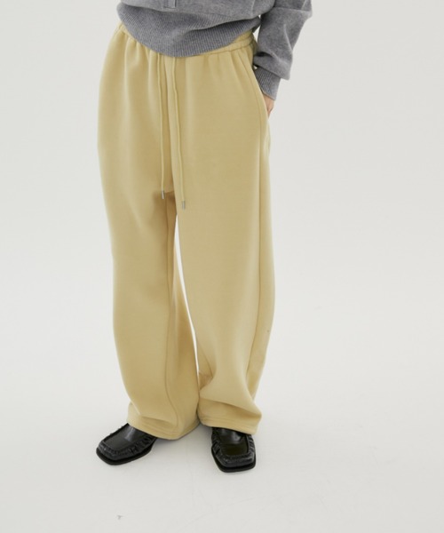 〈 FUULLY STUDIO 25AW COLLECTION 〉 〈 Design Point 〉 ゆったりとしたシルエットながら、 どこか女性らしさの漂う上品なラフさが魅力のスウェットパンツ。 しっかりとした生地感に、ふんわりと暖かな裏起毛を施し 寒い冬にも重宝したくなる1枚に仕上げました。 ウエストは総ゴム仕様で、コードも付いているので快適な穿き心地とサイズ調整が可能。 裾にはドロストコードを施し、キュッと絞ればテーパード風にシルエットチェンジも叶います。 その日の気分に合わせて、アレンジを楽しんで。 便利なポケット付きで、実用性も抜かりなく。 ベーシックに使いやすいブラック、グレーと、暗くなりがちな冬のスタイリングに 華やぎを添えるイエローの3色展開です。 〈 Styling 〉 足元に上品なミュールを合わせて大人なラフフェミニンスタイルが今の気分。 ショート丈のトップスでメリハリのあるスタイリングがおすすめです。 〈 Size 〉 FREE サイズ 〈 Detail 〉 ポリエステル70%, コットン27%, ポリウレタン3% 透け感:なし 伸縮性:あり ※裏起毛あり ケア方法:ご自宅でお洗濯可能です。 ネットに入れてドライ(おしゃれ着洗い)にてお洗濯ください。 ※濃色品は多少色落ちする可能性がありますのでお洗濯のさいは、淡色のものとは別にお洗い下さい。 ※濃色品は漂白剤入り、または漂白剤成分のある洗剤の使用はお控えください。 ※照明の関係により、実際よりも色味が違って見える場合がございます。 ※商品に付いている商品表示とアテンションタグをご確認の上、着用・お取り扱い下さい。 〈 FUULLY STUDIO 〉 -フーリィースタジオ- 「そぎ落としたクラシックをベースにフェミニンさとユーモアさの遊び心あるアクセントを加えた洋服で、 あなたを満たす一枚」をテーマに、キュートで愛おしさを表現する柄やカラー、シルエットを落とし込んだ洋服を提案するレディースブランド。 クラシカルでベーシックなアイテムとフェミニンなアイテムを融合させたスタイリングで、凛とした女性の中の愛おしさを表現しています。 〈 公式Instagram 〉 @FUULLY_STUDIO 新作アイテムの情報やおすすめ商品を随時UPしております。 是非チェックしてみて下さい。 ---------------------------------------------------- 〈 お買い物をよりお楽しみいただく為に 〉 ・商品のお気に入り登録 ♡をクリックして気になるアイテムをお気に入りに登録していただくと 完売カラーの再入荷や、ラスト1点の通知、セールの際の通知を受ける事ができます。 ブランドのお気に入り登録もご一緒にお願い致します。