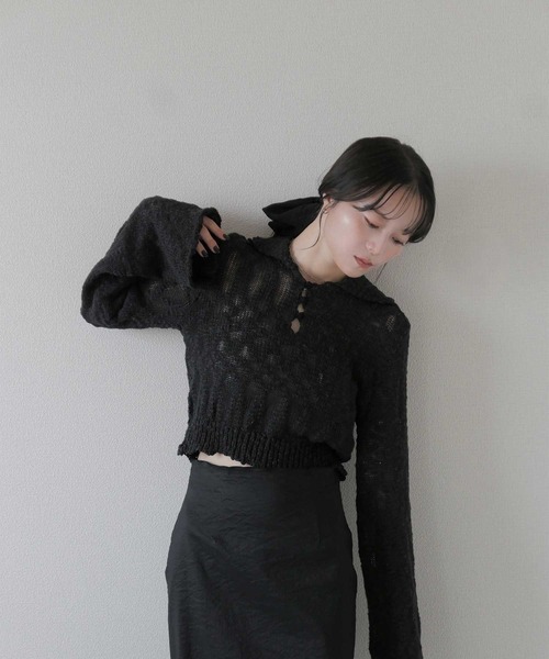 ● designぽこぽことした立体的な編み地が目を惹くニットトップス。手編み風のローゲージで、1枚1枚で表情の異なる風合いに。同糸で仕立てたくるみボタンがアクセントになり襟元まで抜け目なくかわいらしい印象を演出します。袖は昨年人気だったフレアスリーブを採用。長めの袖丈と広がるラインが女性らしい抜け感をプラス。シンプルながらも、特別感のある1枚に仕上がりました。● fabric凹凸のある糸を使用し、ふっくらとした柔らかな質感に。厚手すぎず、軽やかで柔らかい素材感なので秋のはじまりから春先までロングシーズン活躍。肌触りも良く、長時間の着用でもストレスを感じにくいのも嬉しいポイント。● stylingデニムやワイドパンツを合わせたカジュアルなスタイリングから、ロングスカートやスラックスで合わせた大人フェミニンな着こなしまで幅広く対応。シンプルながら存在感のある編み地で、コーディネートの主役になるアイテムです。――――――――――――厚み:普通伸縮性:あり裏地:なし透け感:あり――――――――――――▼▼ぜひ、お気に入りのご登録をお願いします▼▼♡をクリックして下さい。お気に入り登録をしていただきますと、再入荷通知や、ラスト1点の通知、セールの際の通知も受け取ることができます。【ブランド】Reurie'/レウリィ/レウリー穏やかな心で日常を過ごす…毎日がちょっと幸せになるように...“Reurie‘を着ることで、何でもない日がちょっと幸せで、心も休まって、穏やかに過ごせますように。”という願いを込めて。普段のアイテムに取り入れやすい、大人カジュアルをご提案。柔らかく、リラックス感があるけど、どこか1つ芯の通ったトレンドアイテムをお届けします。【ATTENTION】※アイロンの際はあて布の使用をおすすめいたします。※商品画像につきましては、なるべく実物に近づけて撮影いたしておりますが、閲覧頂いておりますモニターによって、画像と実際の商品のお色に多少の差異が生じる場合が御座います。予めご了承下さい。※実際の色味は商品画像のトルソー着用の物撮り画像をご参照ください。より実物の色味に近く撮影したものになります。※サイズにつきましては、すべて平台に平置きにし測定しております。商品によっては実際の製品上がりサイズと1~3㎝程、多少誤差が生じる場合がございます。 予めご了承ください。