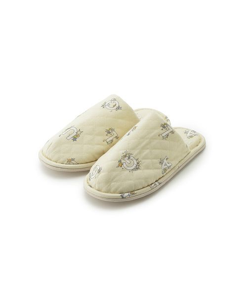 【アルファベット総柄のキルティングルームシューズ】 【Fabric】 柔らかな風合いのコットン、レーヨンの混紡素材を使用しています。 【Design/Styling】 GELATO PIQUEのロゴアルファベットに、小さな星々をあしらったPOPなルームシューズです。中綿入りのキルティング生地に、遊び心あるアルファベットプリントを散りばめました。踵の位置にPIQUEのロゴ刺繍も入っています。カラーはベーシックなクリームとネイビー。同シリーズのルームウェアと合わせて、ギフトにもおすすめのアイテムです。 ※照明の関係により、実際よりも色味が違って見える場合があります。 またパソコン・スマートフォンなどの環境により、若干製品と画像のカラーが異なる場合もございます。予めご了承ください。 商品の色味は、商品単品画像をご参照下さい。 ※商品画像はサンプルのため、色味やサイズ等の仕様に変更がある場合がございますので、予めご了承ください。