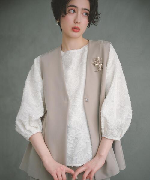 【デザイン】 花柄のジャカード生地を使用したこのブラウスは、1枚で映える存在感が魅力です。 ラグランスリーブが袖にふんわりとボリュームを生み出し、シンプルながらも華やかな印象を与えます。 全体のデザインは上品さを保ちながら、独自の柄がアクセントとなっており、着るだけでコーディネートの主役となるアイテムです。 【着こなしポイント】 テーパードパンツやワイドパンツと合わせれば、きちんとした大人のコーディネートが完成します。 また、パールなどのアクセサリーをプラスすると、さらに華やかさとエレガントさが引き立ち、フォーマルにもカジュアルにも使えるスタイルを楽しめます。 ※照明の関係により、実際よりも色味が違って見える場合があります。また、パソコン・スマートフォンなどの環境により、若干製品と画像のカラーが異なる場合もございます。 モデル情報:身長171cm B77 W59 H87 着用サイズ:12(M) 店舗へのお問い合わせ商品番号:040-85001 ●製品寸法: 12(M):着丈61cm B100cm 裄丈69cm 13(L):着丈63cm B103cm 裄丈70cm 備考: