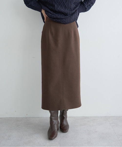 ウォーム感のある柔らかなメルトン生地で仕立てたスカート。 すっきりとしたナローシルエットで、ボリュームのあるトップスともバランス良くコーディネートできます。 タックインスタイルが美しく決まる、後ろゴム仕様のウエストではき心地も抜群。 合わせ方次第でオンオフ幅広く活躍するアイテムです。 同素材のカーディガンとセットアップ着用もおすすめです。 <同素材アイテム> ニット切替メルトンVネックカーディガン(07001132700) 透け感[なし] 生地の厚さ[普通] 光沢感[なし] 伸縮性[ややあり] 裏地[あり] ポケット[なし] ※モデル着用画像は、光の当たり具合で色味が違って見える場合がございます。 ※お使いのモニター環境によって商品の色味が違って見える場合がございます。 ------------------------------------------- ●YECCA VECCA● (イェッカ ヴェッカ) 「大人のハッピーモードな着映え服」 毎日を自分らしく、ハッピーに過ごすことにポジティブな女性のためのリアルクローズ。キーワードは「遊び心のある、女性らしいモード服」でも「コンフォート」。 都会的で女性らしいムードを大切に着ていて心地よく、気持ちが上向きになるような遊び心のあるデザインウェアをラインナップ。 自分自身がわくわく出来る洋服で日常を最大限に楽しむ大人の為のスタイルを提案していきます。 ▼商品のお気に入り登録がおすすめです ▼ 商品ページ内のハートマークをクリック。完売時の再入荷や、最後の1点の通知、コーディネート画像がアップされたとき、お得なお値下げの際の通知を受ける事ができます。 【お知らせ】ページでも通知が確認できます。 -------------------------------------------