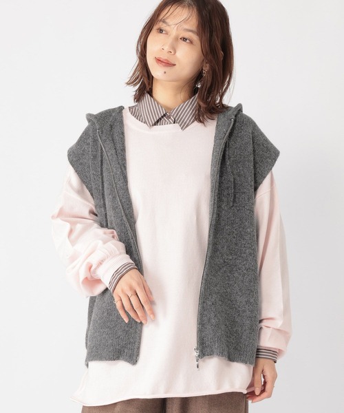 レイヤードはもちろん防寒アイテムとしてもソフトな風合いが秋冬らしいフーディーニットベストーーー【素材】ストレッチの効いたブークレ糸を使用。片畦編みで厚みがありつつソフトな風合いがポイントです。【デザイン】5ゲージで作成されたフーディーニットベスト。片畦のリブ感とフードの首回りのボリュームを活かしたミニマムなデザイン。今年らしいジップ仕様もポイントで、全体を引き締めるアクセントになっています。トップス ベスト ジレ ニット ーーー【スタイリング】コーデのアクセントとしてシャツやカットソーの上にレイヤードした着こなしがおすすめ。コートの中に着用して防寒アイテムとしてご着用いただくのもおすすめです。