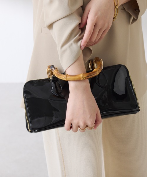 シーズンムードを高めるバンブーハンドルバッグ【POINT】・小ぶりながらも実用性に優れた横長シルエットのハンドバッグ。・バンブーの持ち手が季節感を演出◎シンプルながらもスタイリングのアクセントに。・サイドまでファスナーが付いているので間口が大きく開いて使い勝手も抜群!・取り外し可能なショルダーベルト付きなので普段使いもしやすいです。【素材】床革【サイズ】幅:約29cm高さ:約12cmマチ:約9cm持ち手:約29cm【気になる商品は「お気に入り」登録を】 ハートマークをクリックし、お好きなカラーを選んでお気に入りに登録すると入荷情報や残り1点の通知、完売カラーの再入荷、セール情報などを受け取ることができます。※撮影場所やお使いのモニター環境により若干お色味が異なる場合がございます。特にロケの撮影では明るく見える傾向にございます。詳細撮影画像で色味をお確かめくださいます様お願いいたします。※サンプルで撮影をしております。若干の仕様が変更になる場合がございますので予めご了承の上ご注文くださいますようお願いいたします。※サンプルでの採寸のためあくまで目安となります。予めご了承ください。≪返品・交換について≫・着用後、洗濯後の返品・交換は致しかねます。・商品到着後、着用前に商品状態のご確認をお願い致します。