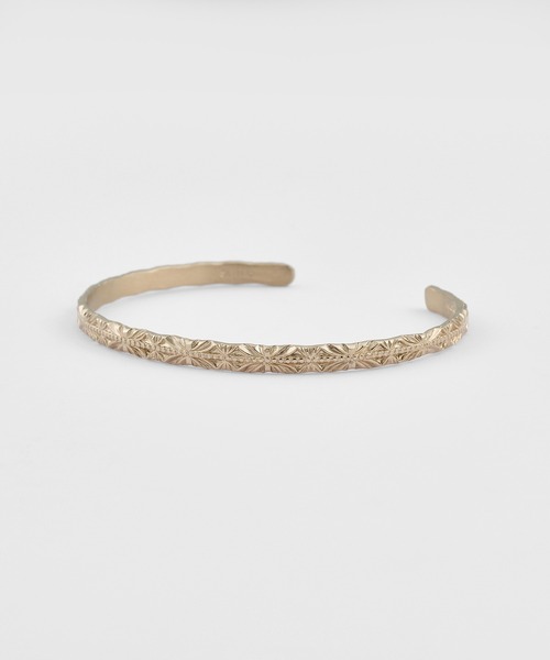 シルバー板に植物の柄をデザインしたC型バングル。西洋のタイルや石柱に好んで使用された植物モチーフ模様。彫り模様の凹凸が、複雑な模様を繊細にみせます。ブラウンゴールドカラーのメッキをかけることで、柔らかさを加えました。