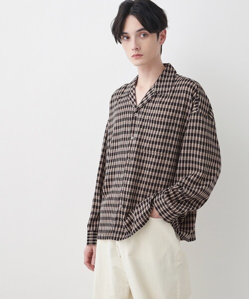 【デザインポイント】 遊び心のあるバイカラーデザインシャツ。 さりげなく柄の表情が変わることで、1枚で着ても普通じゃ終わらない抜け感が出る主役アイテムです。 【スタイリングポイント】 羽織りとしてTシャツの上に重ねても、ボタンを閉じてきれいめカジュアルにまとめても◎ 1枚あると着こなしのバリエーションが一気に広がります。 【素材ポイント】 ハリ感もある軽くて柔らかな素材を使用しています。 【仕様】 ・ポケット数:胸×1 ※照明の関係により、実際よりも色味が違って見える場合があります。また、パソコン・スマートフォンなどの環境により、若干製品と画像のカラーが異なる場合もございます。 モデル情報:身長180cm B89 W72 H93 着用サイズ:03(L) 店舗へのお問い合わせ商品番号:F59-84303 ●製品寸法: 02(M):着丈65cm B134cm 袖丈50cm 肩幅64cm 03(L):着丈68cm B142cm 袖丈51cm 肩幅66cm 備考: