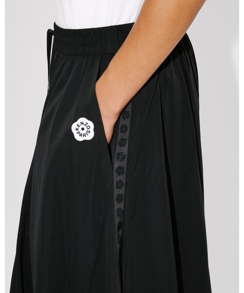 'Boke Flower 2.0' ミディ スカート 流れるようなポリエステルコットンのテクニカル素材 ウエストにゴムとドローコード サイドにはパッチポケット×2 サイドには 「Boke Flower 2.0」 のバッジ モデル:身長175 cm、着用サイズ:S 総丈:75 cm.この製品は通常のサイズをお選びください。