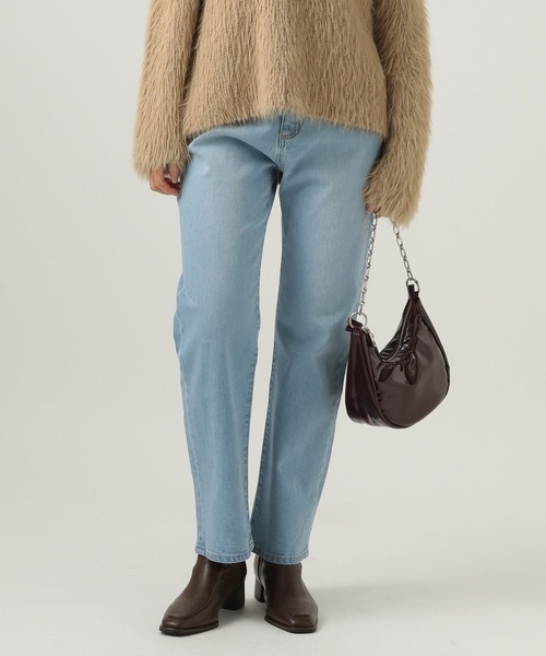 脚の付け根からすらっと伸びるシルエットが特徴のストレートデニムーーー★おすすめポイント★[1]軽やかで快適に穿くことが可能[2]穿きやすい太すぎず細すぎないゆとり感[3]脚のラインを拾いすぎない美脚見えするデニム[4]カーブベルトで腰回りすっきりーーー[fabric]生地にはストレッチ混を使用。綿100%デニムのような加工感でありながら、軽やかで快適に穿くことが可能。濃淡のコントラストが強い加工ではなく、洗いをかけてあえてぼんやりとした古着顔に仕上げることで、長年穿きこんだような愛着が湧いてくる表情に。[design]太すぎず細すぎない絶妙なゆとり感が、脚のラインを拾いすぎず美脚見えする1本。 また脚の付け根からすらっと伸びるストレートシルエットで、脚長見えまで叶えてくれるデニム。また、カーブベルトを採用しているので身体に馴染み腰回りがすっきり見えるのがポイント。[styling]カジュアルなトップスはもちろんテーラードジャケットなどのキレイめアイテムとも相性がよく、ニットやTシャツなどのトップスをインしてもサマになるので、季節や気分によって合わせるアイテムを変えられる着回し力抜群な1枚。※屋外での撮影画像は光の加減で実際の商品より明るく見えたり、風合いが異なって見える場合がございます。 商品の色味はスタジオ撮影の画像を参考にして下さい。-------------------------------------≪お買い物をよりお楽しみいただくために≫◆商品のお気に入り登録(ハートマークをクリック)完売カラーの再入荷通知や、完売間近の通知、セールの通知も受けることができます。◆ブランドのお気に入り登録新商品や再入荷など、いち早くブランドのお得な情報を受け取ることができます。-------------------------------------