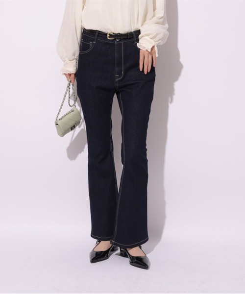 脚のラインをすっきり見せるスリムシルエットに、裾へ向かって緩やかに広がるフレアを合わせた美脚デニム。ニットやブラウスはもちろん、ショート丈アウターとの相性も良く、きれいめにも大人カジュアルにも活躍。色違いで揃えたくなる万能ボトムです。【ご注意】※撮影照明の関係により、実際の商品と色味が異なって見える場合がございます。また、パソコン・スマートフォンなどの環境により、製品と画像のカラーが異なる場合もございます。予めご了承ください。※商品画像はサンプルのため、色味やサイズ等の仕様に変更がある場合がございますので、予めご了承ください。