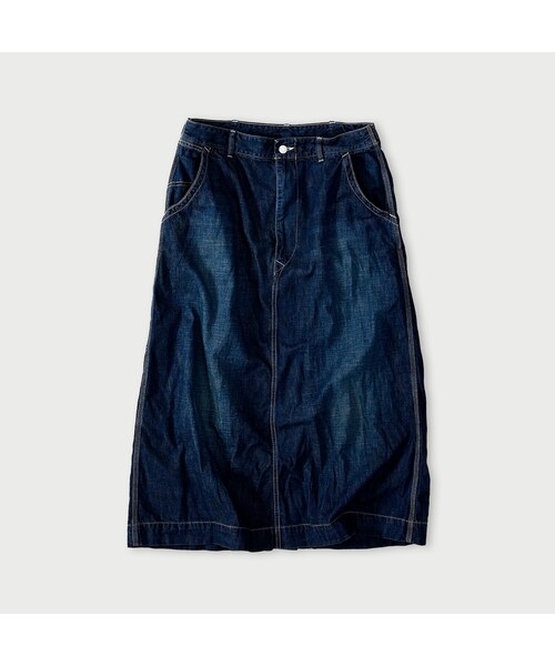 はたらきもののデニムデニム工場で出会った、一本のデニム。藍のような色に惚れ込んで、毎日袖を通したくなる素直なライトオンスデニムを織りました。ツールポケットにトリプルステッチ。後ろに入れたスリットで、動きまわれるペインタースカートです。