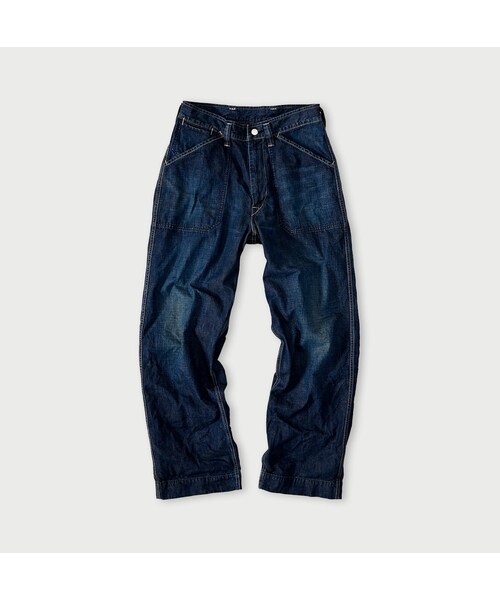 はたらきもののデニムデニム工場で出会った、一本のデニム。藍のような色に惚れ込んで、毎日袖を通したくなる素直なライトオンスデニムを織りました。洗いをかけてアタリを出し、さらに加工して色落ちさせました。機能的で太めなシルエットのペインターパンツです。