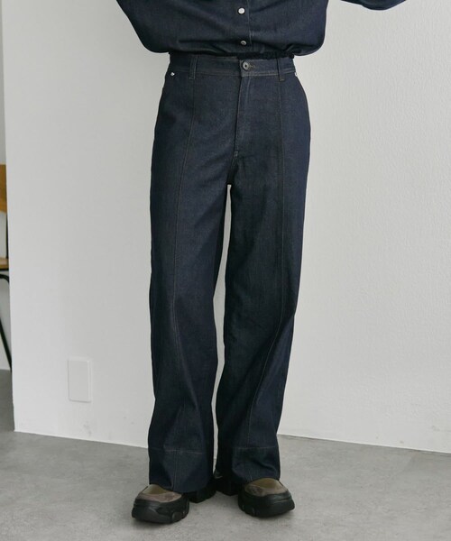 縦ラインを強調するセンターラインでスタイルアップが叶うデニムパンツ■デザイン・着心地・センター部分の切替とステッチデザインがポイント・縦ラインを強調するセンター切替とやや裾広がりになっているワイドシルエットでスタイルアップ効果もあり・ウエスト縁部分のフリンジもポイント・着回しの効くシンプルデザイン・両サイドとヒップにポケット付き・別売りのジャケット/シャツに合わせてセットアップ着用も可能■関連商品・デニムリボンシャツ【SUM1 STYLE】・Vネックデニムジャケット【SUM1 STYLE】■サイズ追記・総丈:101cm・ウエストベルト巾:4.2cm■スタイリングシンプルなデザインなので柄物との相性◎ユニークなデザインニットや総柄のブラウスなど幅広く合わせていただけますしもちろんシンプルなデザインのトップスにもぴったり。別売りのブラウスやジャケットと合わせたセットアップ着用もおすすめです。■素材・お手入れ方法素材:綿40%・リヨセル40%・ポリエステル20%洗濯表示:洗濯機による弱洗い可・・・・・・・・・・・・・・・・・・・・・・【SUM1 STYLE(スミ スタイル)】とは…ear PAPILLONNERのアパレル、グッズを展開するインブランド。 コンセプト▼メンズライクの中より溢れ出る女性らしさ動きのある大人の新しいニューカジュアル自らファッションを創り出す人々に提案SUM:統合 1枚で決まる洗練されたスタイルSUM:総和 生地と生地、柄と柄、無限の組み合わせの答えSUM:和 人と人、洋服 SUM:要点 デザインを明確に伝えるインパクト