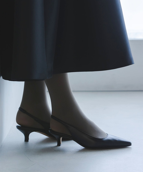バイヤー渾身の別注パンプスが2026SSついに登場!女性らしいヒールが欲しい。という想いから生まれた別注パンプス。品のあるポインテッドトゥに、甲の肌がきれいに見えるカッティングで、ローヒールながら足元に程よい抜け感を演出しています。インソールにはクッション性を持たせ、長時間履いても疲れにくい履き心地にもこだわりました。バックストラップ部分にはゴムを入れ込み、着脱のしやすさとフィット感の良さを両立。日常使いに寄り添いながら、気分を上げてくれるヒールシューズに仕上がっています。また素材はアッパー部分に国産の厳選された牛革を使用し、目が詰まった革はキメが細かく美しい見た目に。またそれ故に保形性に優れ、ハリのある皮革で女性らしさを感じるポインテッドトゥのラインが実現します。※取り扱いについては、商品についている品質表示でご確認ください。※こちらの商品は、NOBLEでの取り扱いになります。直接店舗へお問い合わせの際はNOBLE店舗へお願い致します。※照明の関係により、実際よりも色味が違って見える場合があります。またパソコン・スマートフォンなどの環境により、若干製品と画像のカラーが異なる場合もございます。※商品の色味は、商品アップ画像をご参照ください。